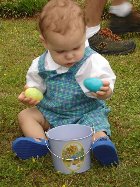April -- Shaking his eggs to make sure they aren't duds.
