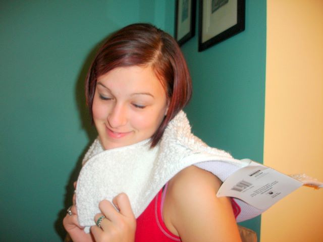 Christmas 2007 -- Maya models a toilet mat