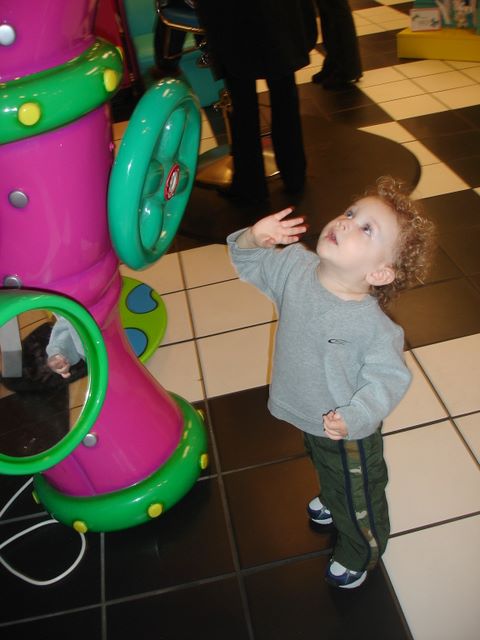 Pierce's First Haircut! -- Waving at himself in the television (he didn't know he was on camera)