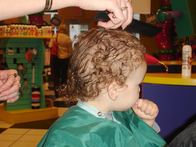 Pierce's First Haircut! -- He works on a sucker while she works on his hair