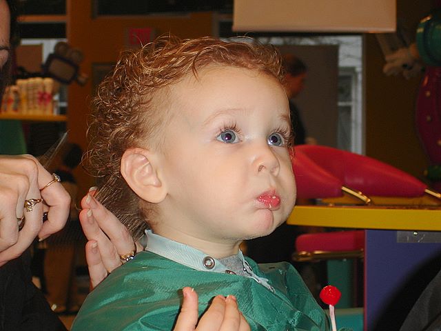 Pierce's First Haircut! -- There go the pencil tight ringlets at the back!